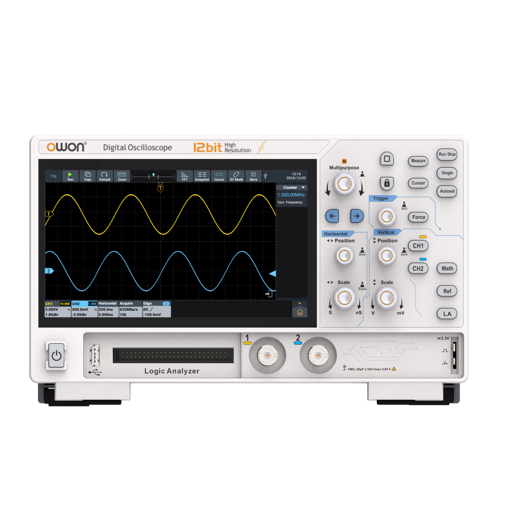 Oscyloskop cyfrowy OWON ADS922A to wysokiej klasy, 2-kanałowe narzędzie pomiarowe oparte na zaawansowanej architekturze X-Vision. Model ten oferuje szerokie pasmo 200 MHz, próbkowanie do 2 GSa/s (w trybie jednokanałowym) oraz imponującą rozdzielczość pionową 12-bit, co pozwala na precyzyjną analizę najdrobniejszych szczegółów sygnału. Urządzenie integruje w sobie aż 7 funkcji pomiarowych, w tym: oscyloskop, multimetr, analizator widma FFT, licznik częstotliwości, woltomierz oraz opcjonalny analizator stanów logicznych.