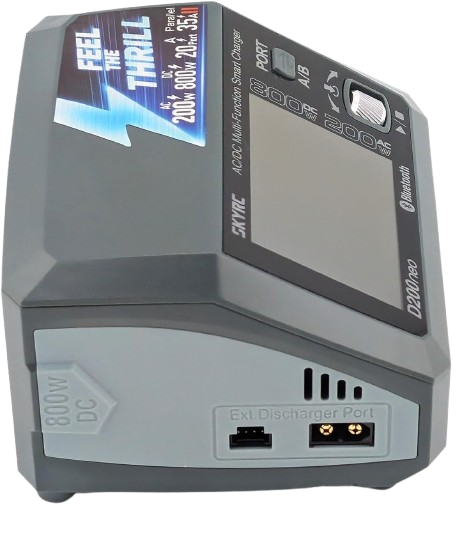 Marka SkyRC prezentuje model D200neo, zaawansowaną i inteligentną ładowarkę wielofunkcyjną AC/DC wyposażoną w dwa niezależne porty. Urządzenie to zostało zaprojektowane z myślą o branży modelarskiej i elektronice użytkowej, służąc do błyskawicznego ładowania, głębokiego rozładowywania oraz precyzyjnej analizy kondycji akumulatorów. Do najważniejszych parametrów modelu należy potężna moc ładowania osiągająca do 800W przy zasilaniu prądem stałym (DC) – po 400W na każdy kanał – oraz 200W przy zasilaniu sieciowym (AC). Ładowarka oferuje możliwość ładowania prądem o natężeniu do 20A na pojedynczym kanale oraz aż 35A w zaawansowanym trybie równoległym, co pozwala na drastyczne skrócenie czasu przygotowania pakietów zasilających.