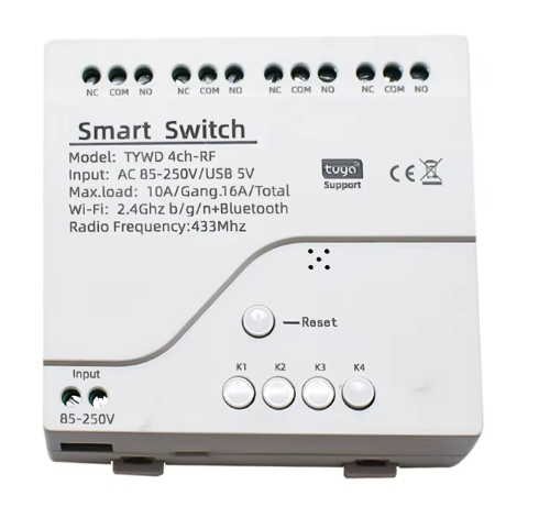 Inteligentny sterownik 4-kanałowy WiFi z RF433 AC 85-250V Tuya Smart Life