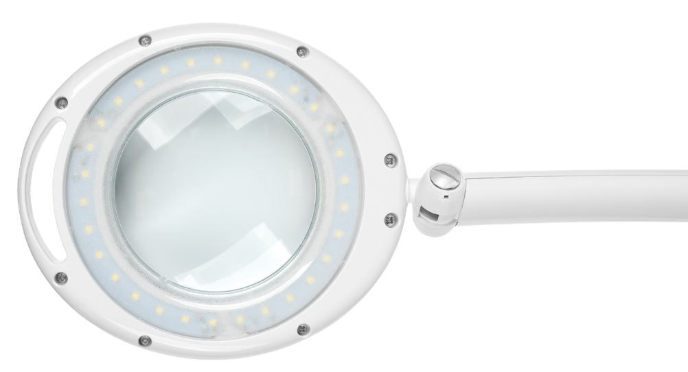 Lampa stołowa marki Rebel wyposażona jest w szklaną soczewkę o średnicy 4 cali (100 mm), która oferuje powiększenie optyczne rzędu 5 dioptrii. Takie parametry pozwalają na swobodne dostrzeżenie najdrobniejszych detali, co czyni ją doskonałym narzędziem do prac modelarskich, konserwacji sprzętu, a także do czytania drobnego druku.