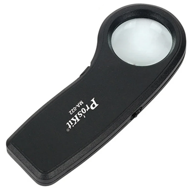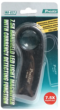 Lupa ręczna MA-022 marki Pro's Kit to niezawodne narzędzie o powiększeniu 7,5X i średnicy szkła 27 mm, wykonane z trwałego szkła optycznego i tworzywa sztucznego. Wyposażona w podświetlenie LED oraz UV, doskonale sprawdza się w warunkach wymagających precyzji, takich jak zegarmistrzostwo, elektronika czy jubilerstwo. Światło UV umożliwia także szybkie sprawdzanie autentyczności banknotów.