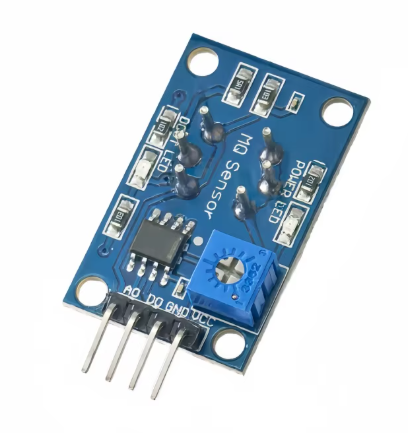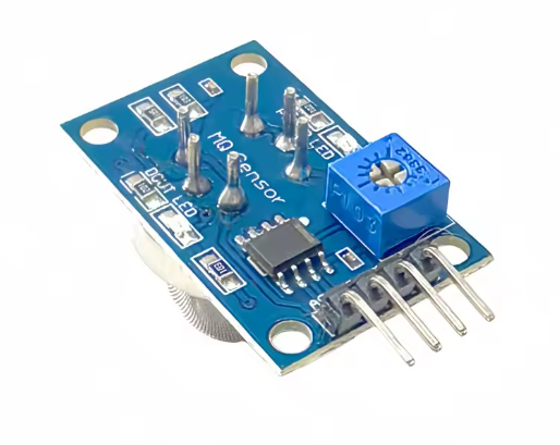 Moduł detektora gazów palnych i dymu oparty na sensorze MQ-2, wykorzystujący półprzewodnikowy element czuły z tlenku cyny (SnO2), którego przewodność wzrasta wraz ze wzrostem stężenia gazów w otoczeniu. Urządzenie charakteryzuje się wysoką czułością i szerokim zakresem detekcji, obejmującym LPG, propan, wodór, metan, butan oraz dym, co czyni go idealnym rozwiązaniem do systemów ostrzegania przed wyciekiem gazu w domach i przemyśle. Moduł oferuje dwutorowy odczyt danych: wyjście cyfrowe (DO) typu TTL z możliwością regulacji progu zadziałania (stan niski/wysoki) oraz wyjście analogowe (AO), gdzie wartość napięcia rośnie proporcjonalnie do stężenia wykrytej substancji. Płytka posiada otwory montażowe oraz złącza goldpin, co ułatwia integrację z mikrokontrolerami.