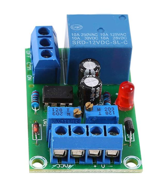 Moduł sterujący 12V, 10A automatyzuje proces ładowania akumulatorów kwasowo-ołowiowych i żelowych, skutecznie chroniąc je przed przeładowaniem oraz głębokim rozładowaniem. Urządzenie samodzielnie włącza ładowarkę przy spadku napięcia do 10,5V i odcina zasilanie po osiągnięciu 14,4V, sygnalizując pracę czerwoną diodą LED. Solidna konstrukcja z przekaźnikiem Songle i złączami śrubowymi ułatwia montaż, a wbudowane potencjometry pozwalają na precyzyjną, ręczną kalibrację progów napięciowych.