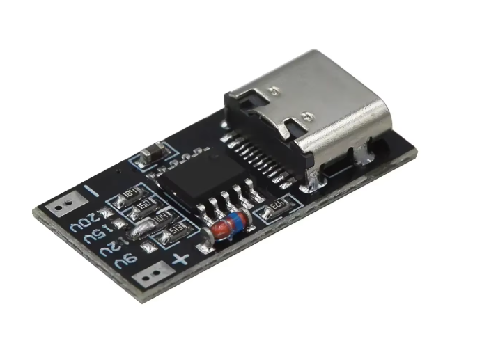 Moduł wyzwalacza napięcia USB-C to miniaturowe urządzenie pozwalające na wymuszenie napięcia 9V, 12V, 15V lub 20V z ładowarek wspierających protokoły szybkiego ładowania. Dzięki obsłudze natężenia do 5A układ idealnie sprawdzi się do zasilania routerów, oświetlenia LED czy sprzętu warsztatowego, pozwalając na rezygnację z tradycyjnych, nieporęcznych zasilaczy. Konfiguracja pożądanego napięcia jest trwała i polega na prostym zwarciu lutowiem odpowiednich padów na laminacie. Moduł wyposażono również w inteligentną funkcję auto-negocjacji, która automatycznie dopasuje najwyższe możliwe napięcie, jeśli ustawiona zworką wartość przekracza możliwości podłączonego źródła zasilania.