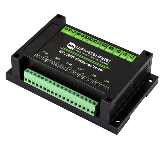 Moduł RP2350-Relay-6CH-W to przemysłowa platforma sterująca, łącząca nowy, wydajny chip RP2350B z rozbudowanymi funkcjami komunikacyjnymi i izolacją ochronną. Dzięki 6 wysokiej jakości przekaźnikom oraz interfejsom RS485 i Wi-Fi 4 / Bluetooth 5.2, jest idealnym rozwiązaniem do aplikacji IoT i automatyki przemysłowej. Urządzenie zapewnia niezawodność dzięki wbudowanym obwodom izolacji zasilania, izolacji optycznej i cyfrowej, chroniąc przed zakłóceniami zewnętrznymi. Całość zamknięta jest w obudowie montowanej na szynę DIN, co ułatwia instalację.