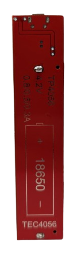 Moduł ładowarki TEC4056 to miniaturowe urządzenie ze złączem Micro USB, przeznaczone do bezpiecznego ładowania niezabezpieczonych ogniw litowo-jonowych (np. 18650). Użytkownik może sprzętowo dostosować prąd ładowania (0.3A, 0.5A lub domyślne 0.8A) poprzez modyfikację rezystorów na odpornej na ekstremalne temperatury płytce PCB. Stan pracy urządzenia jest czytelnie sygnalizowany za pomocą wbudowanych diod LED (czerwona oznacza ładowanie, a zielona pełne naładowanie).
