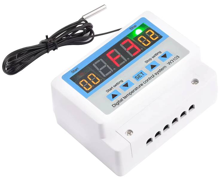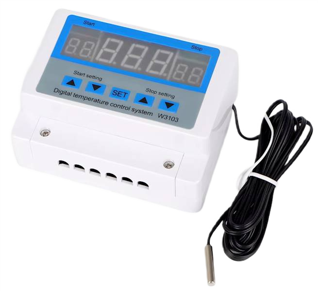 Termostat HX-W3103 to cyfrowy regulator temperatury przeznaczony do automatycznego sterowania urządzeniami grzewczymi lub chłodzącymi w zależności od ustawionej wartości progowej. Dzięki szerokiemu zakresowi pomiarowemu oraz dużej mocy wyjściowej, urządzenie sprawdza się zarówno w warunkach domowych, jak i przemysłowych. Działa na zasadzie włączania/wyłączania podłączonego urządzenia w zależności od aktualnej temperatury otoczenia, mierzonej za pomocą sondy NTC.