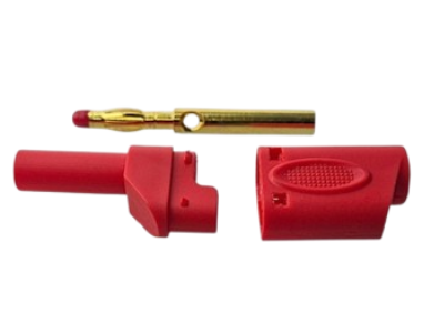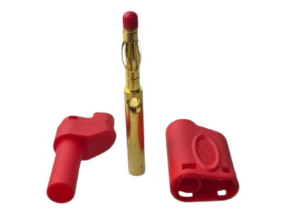 Jest to typ złącza izolowanego, przeznaczonego do samodzielnego montażu. Konstrukcja o długości całkowitej 53 mm zapewnia wygodę użytkowania. Montaż przewodu jest elastyczny i może odbywać się poprzez lutowanie lub metodą na wcisk przez otwór montażowy. Oprócz samego wtyku, element posiada również gniazdo banan 4mm, co zwiększa jego funkcjonalność w rozbudowanych systemach połączeń. Wersja oferowana w tym zestawie posiada izolację w kolorze czerwonym.