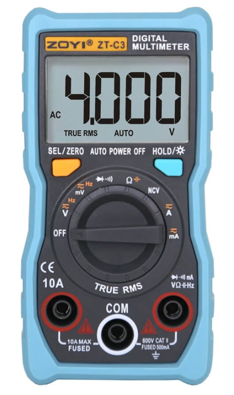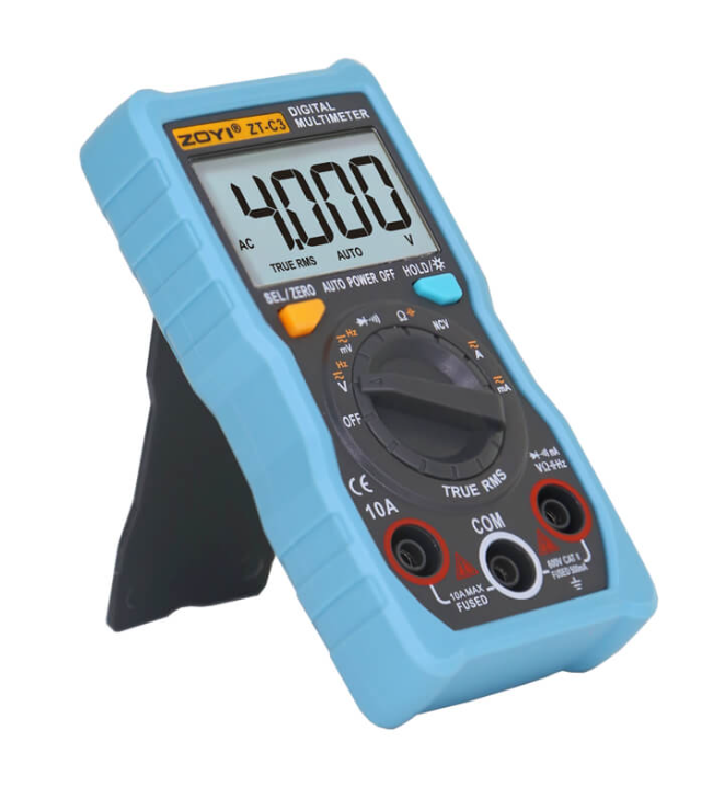 Multimetr cyfrowy ZOYI ZT-C3 to wszechstronne urządzenie pomiarowe, które łączy w sobie funkcje wielu specjalistycznych przyrządów. Umożliwia precyzyjny pomiar napięcia i prądu zarówno stałego, jak i zmiennego, a także rezystancji, pojemności i częstotliwości. Dzięki funkcji True RMS zapewnia dokładne odczyty nawet w przypadku sygnałów o nieregularnym przebiegu. Urządzenie wyposażono również w tester ciągłości z sygnałem dźwiękowym oraz funkcję sprawdzania diod. Bezstykowe wykrywanie napięcia (NCV) znacząco zwiększa bezpieczeństwo pracy, umożliwiając szybkie zlokalizowanie przewodów pod napięciem bez konieczności ich dotykania. Dodatkowo, funkcja Data Hold pozwala zatrzymać wynik na wyświetlaczu, co jest przydatne podczas pracy w trudno dostępnych miejscach. Miernik posiada czytelny, podświetlany wyświetlacz LCD o maksymalnym wskazaniu do 4000 jednostek, co ułatwia odczyt nawet przy słabym oświetleniu. Dla jeszcze większej wygody użytkowania wyposażono go w wbudowaną latarkę LED oraz ergonomicznie zaprojektowaną obudowę. Urządzenie automatycznie wyłącza się po okresie bezczynności, co chroni baterię przed rozładowaniem. Wskaźnik niskiego poziomu baterii informuje użytkownika o konieczności jej wymiany. Miernik został zabezpieczony wewnętrznymi bezpiecznikami, które chronią zarówno użytkownika, jak i samo urządzenie przed uszkodzeniami w przypadku niewłaściwego pomiaru. ZOYI ZT-C3 to niezawodne narzędzie dla elektryków, hobbystów oraz serwisantów, które sprawdzi się zarówno w codziennej pracy, jak i przy bardziej zaawansowanych pomiarach.